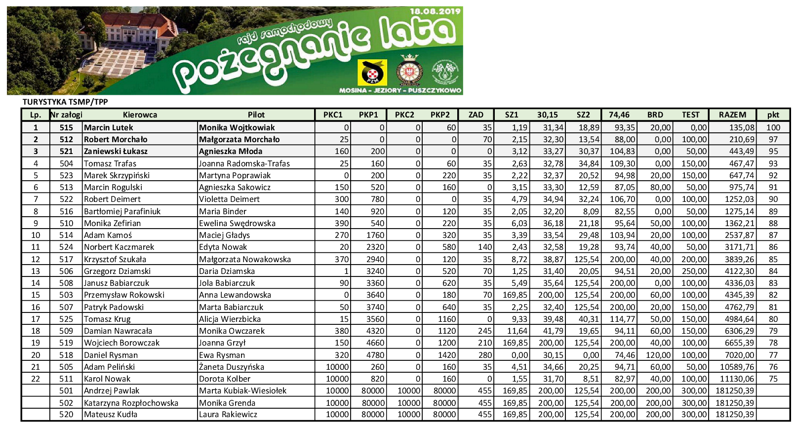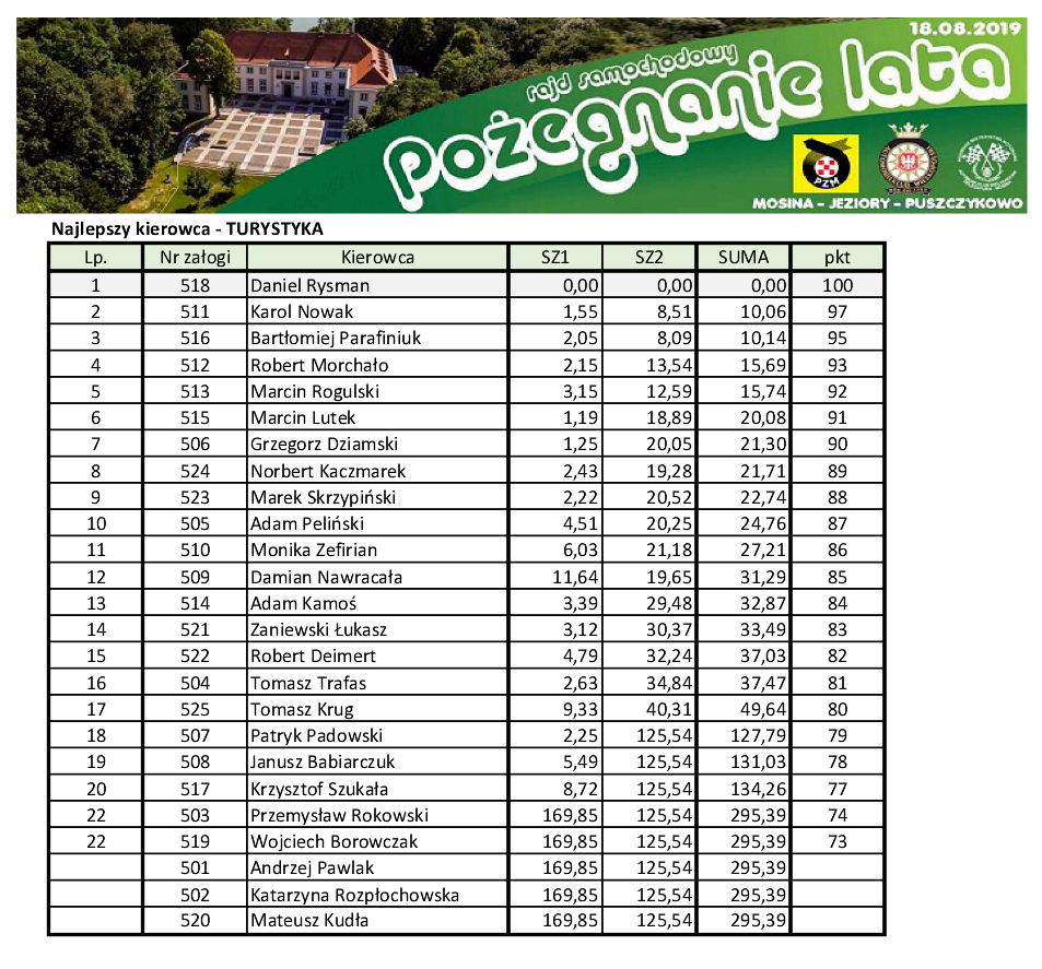 Lubimy rajdy wymagające dużego skupienia dlatego śmiało możemy ocenić rajd w skali 9/10. Dziękujemy organizatorom: Automobilklubowi Wielkopolski przy wsparciu Powiatu Poznańskiego za perfekcyjną organizację oraz autorom trasy rajdu, którzy wykazali się pomysłowością i zapewnili wszystkim uczestnikom duży poziom adrenaliny.